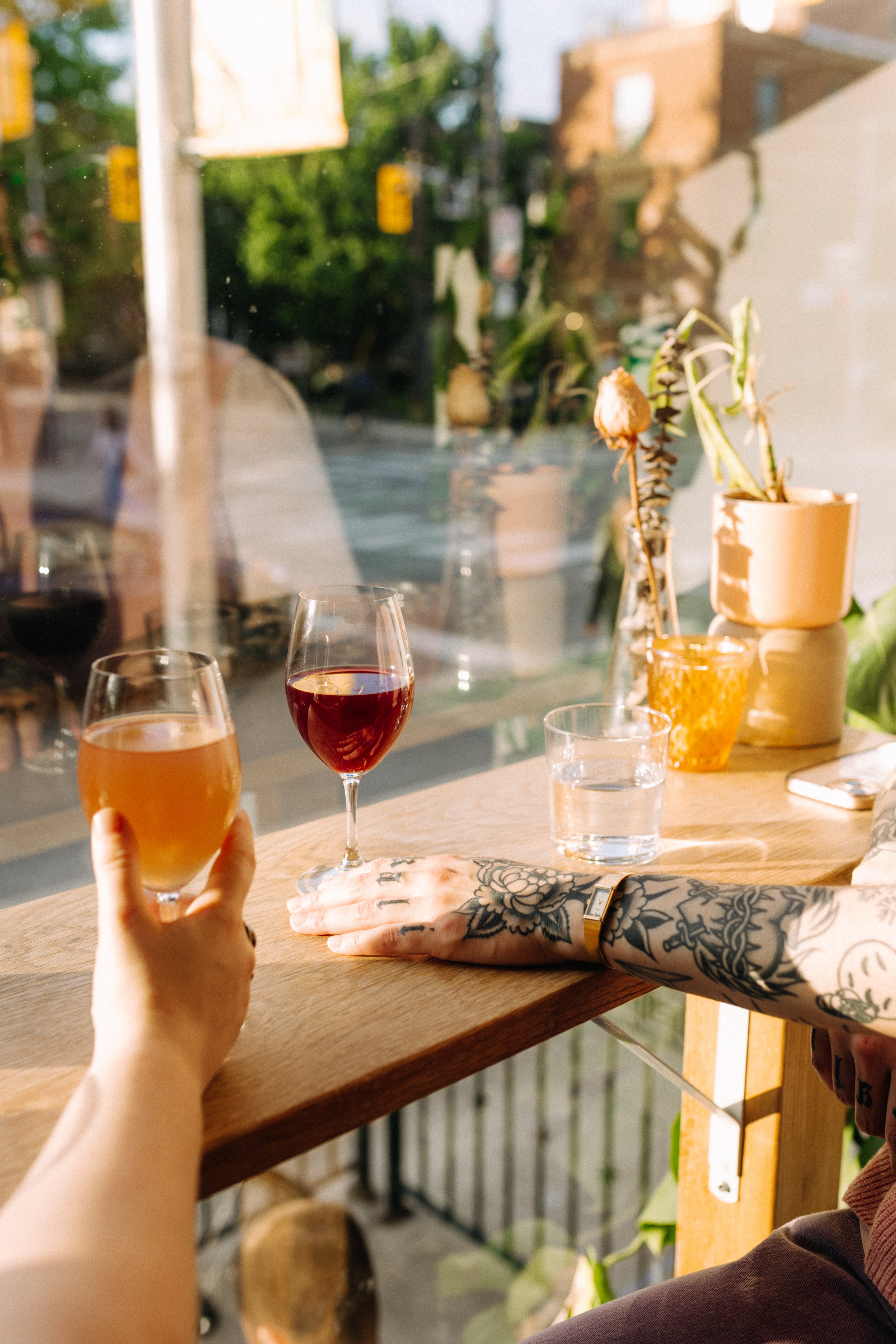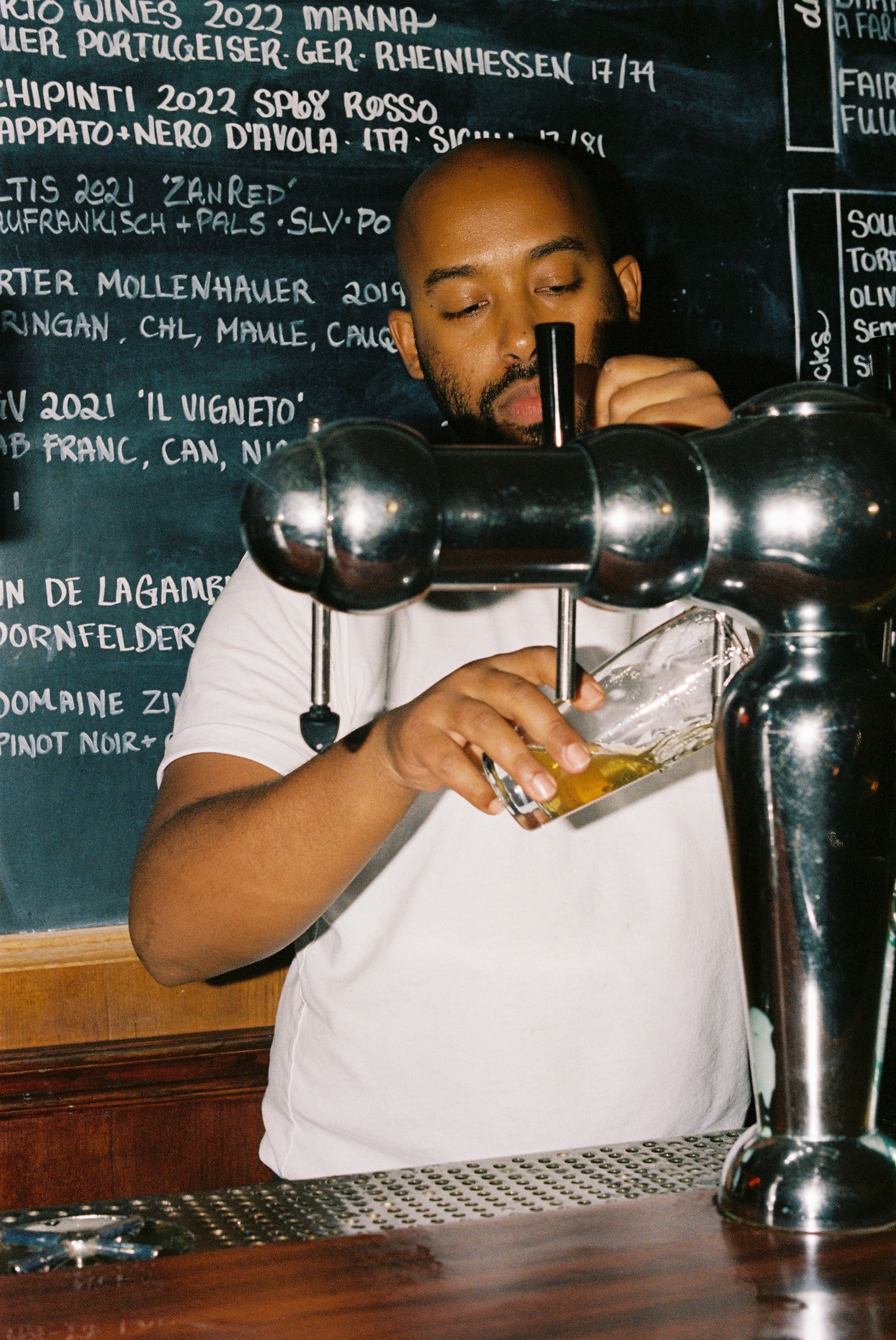 Our by-the-glass wine list changes daily and focuses on natural and low-intervention wines from around the world. We have an extensive draft list of local beer and cider and a short cocktail list. We always carry a selection of non-alcoholic beverages. All our retail bottles are available to drink at the bar ($40 corkage fee applies).